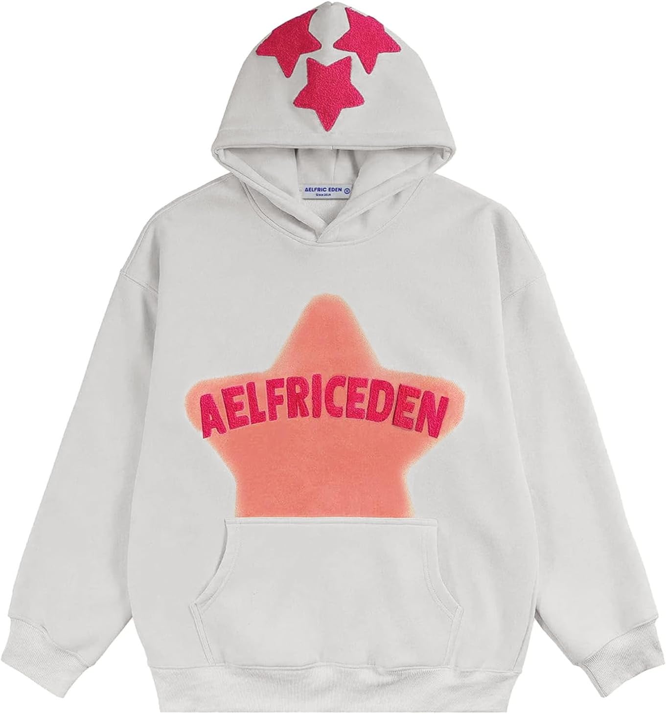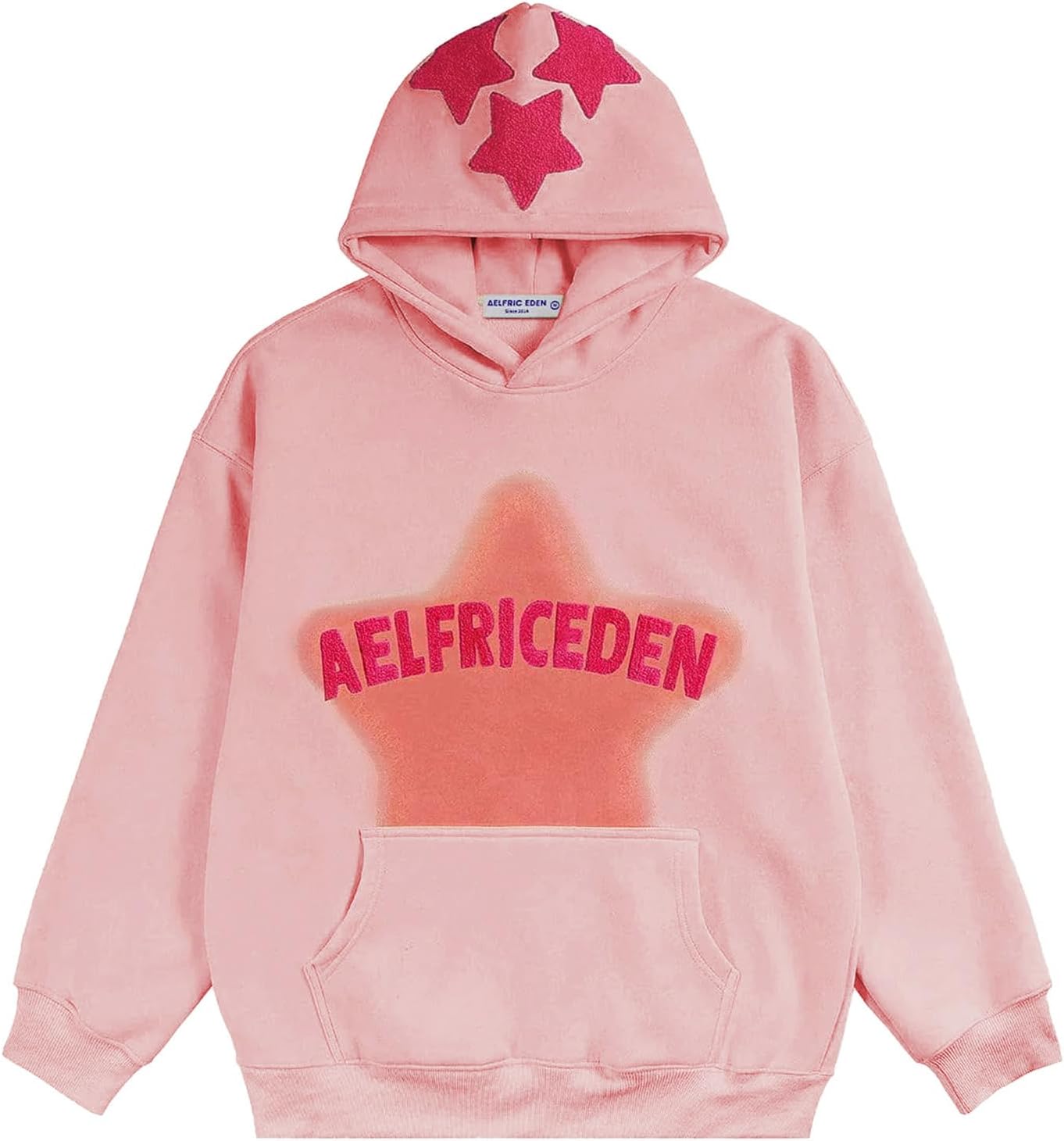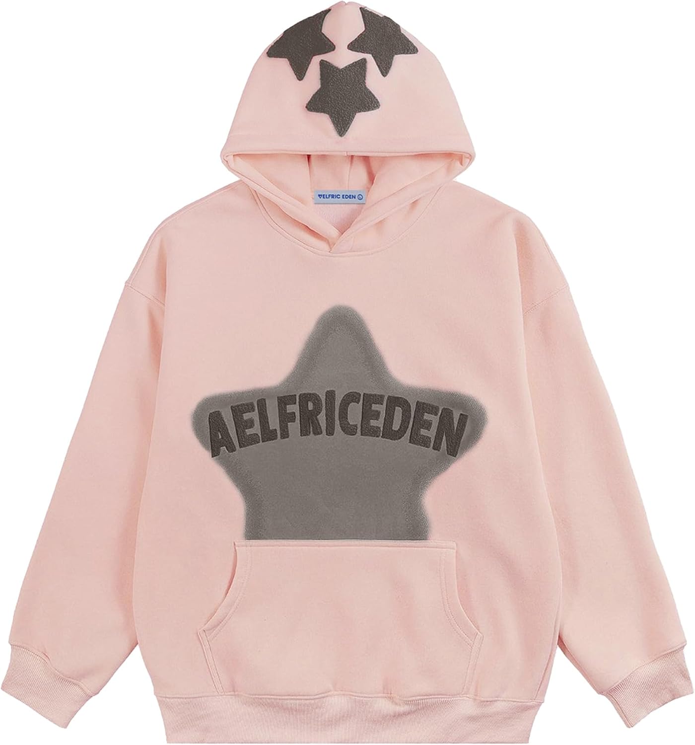 Aelfric Eden Womens Graphic Hoodies Pink Star Print Hoodie Unisex Oversized Hoodies Long Sleeve Pocket Pullover