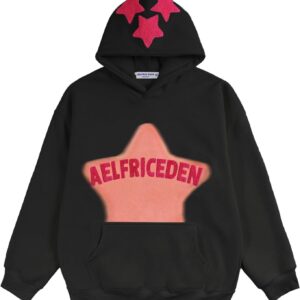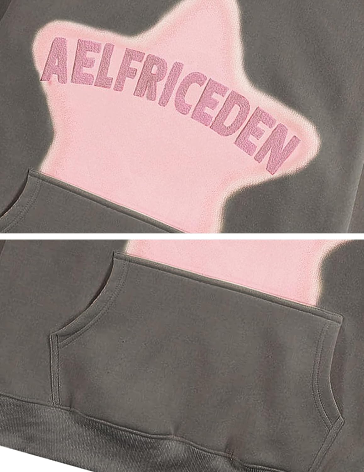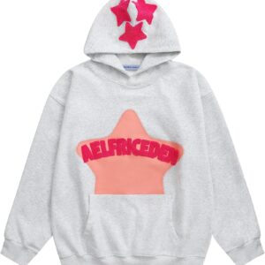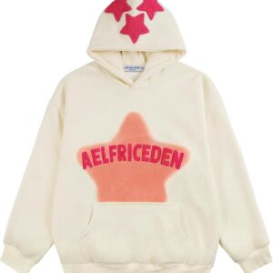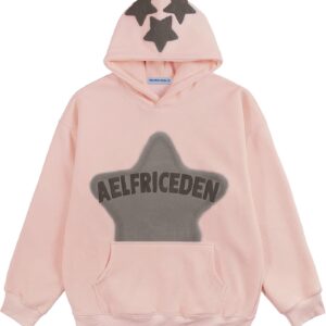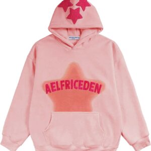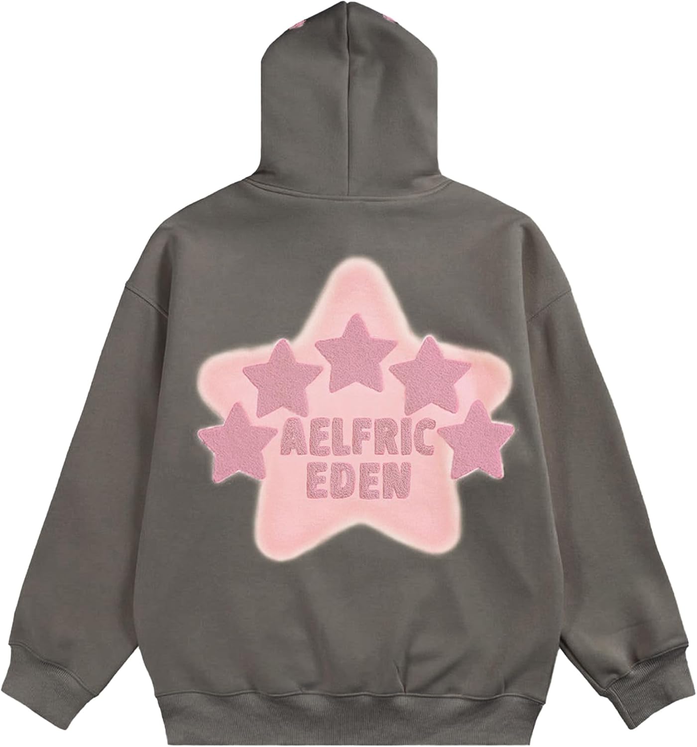 Aelfric Eden Womens Graphic Hoodies Pink Star Print Hoodie Unisex Oversized Hoodies Long Sleeve Pocket Pullover