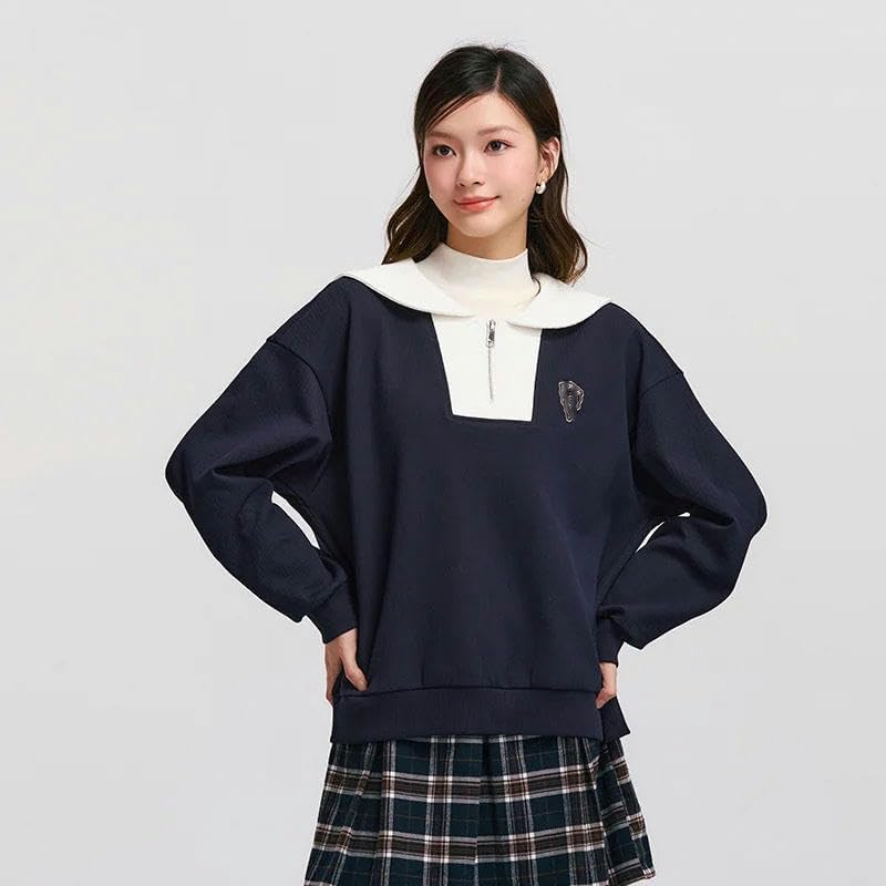 JOHAFXC Sweatshirt Women Lapel Clothing Loose Dropped Shoulder Winter Tops