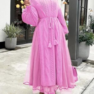 KANSOON Two Piece Fall Outfits for Women Long Lantern Sleeve Slit Sweater Dress and Maxi Tulle Skirt Set with Belt quantity