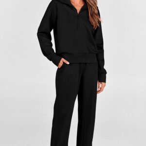PRETTYGARDEN Women's 2 Piece Outfits Casual Lapel Half Zip Sweatshirts And Wide Leg Pants Tracksuit Sets quantity