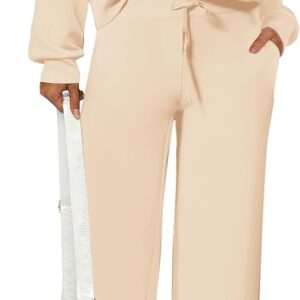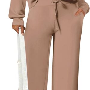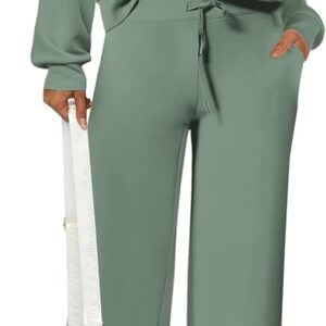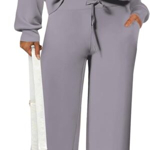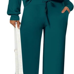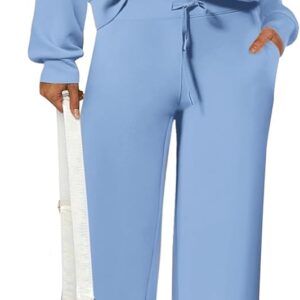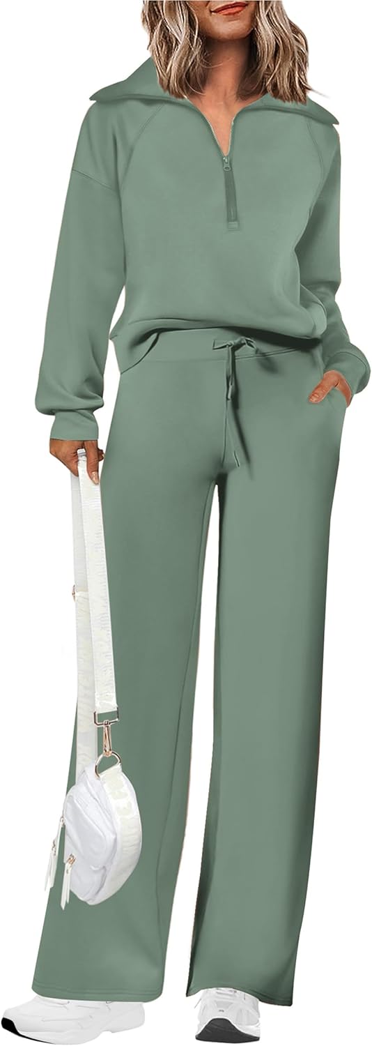 PRETTYGARDEN Women’s 2 Piece Outfits Casual Lapel Half Zip Sweatshirts And Wide Leg Pants Tracksuit Sets