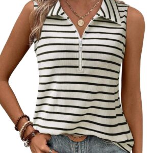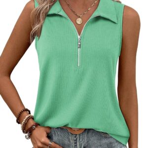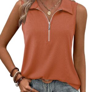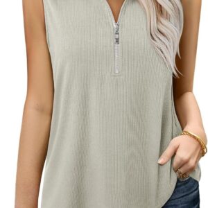 Vivilli Womens Ribbed Tank Top Zipper V Neck Dressy Casual Blouses Sleeveless Camisole Tops Work Tank Polo Shirts