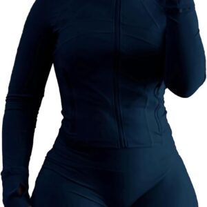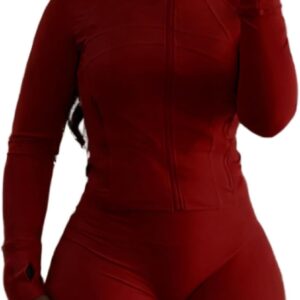 Women Sets 2 Piece Outfits Long Sleeve Workout Jacket Bodycon Short Pants Sets